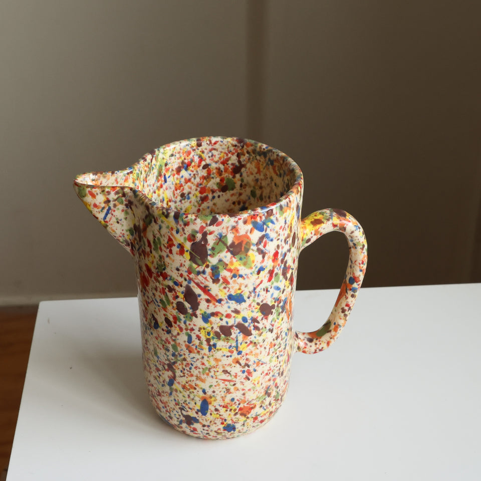 Allover rainbow splatter pattern, coated in shiny clear glaze.