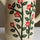 Stamped floral pattern, coated in shiny clear glaze. One side has red blooms, the other orange.