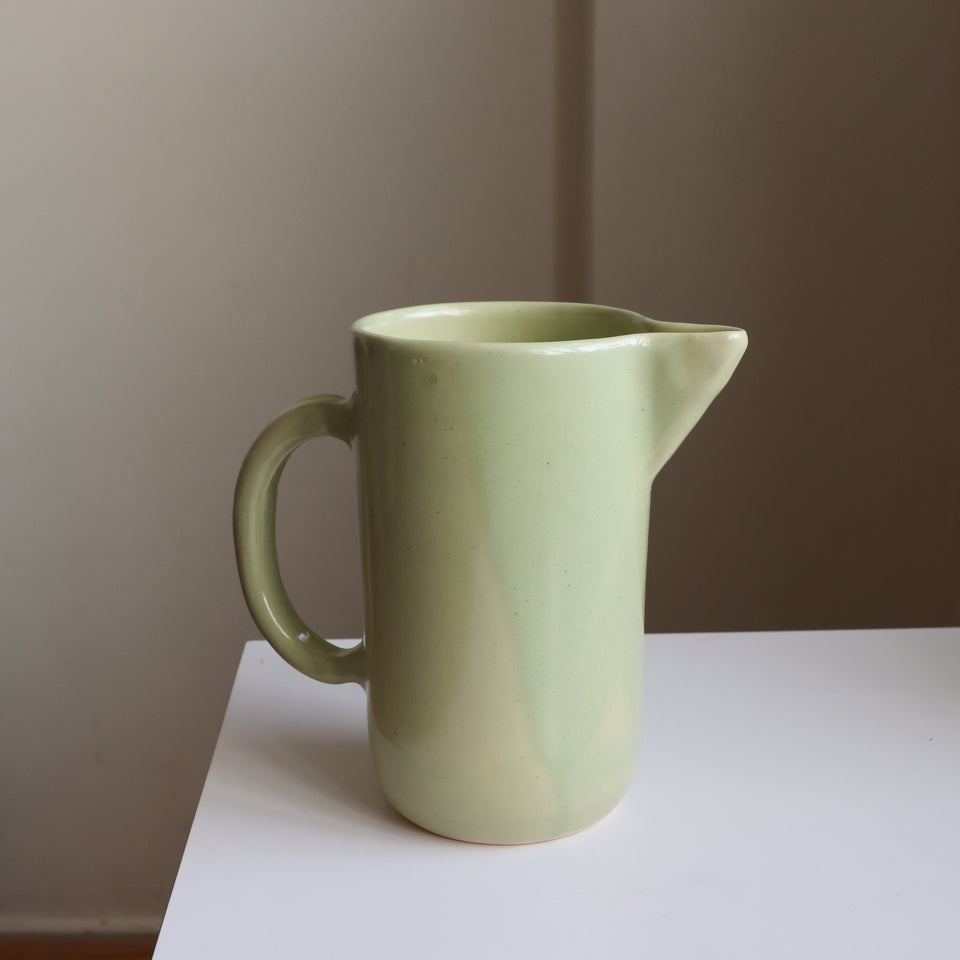 Stoneware with an eggshell finish, soft green. In between a mint and a pea.