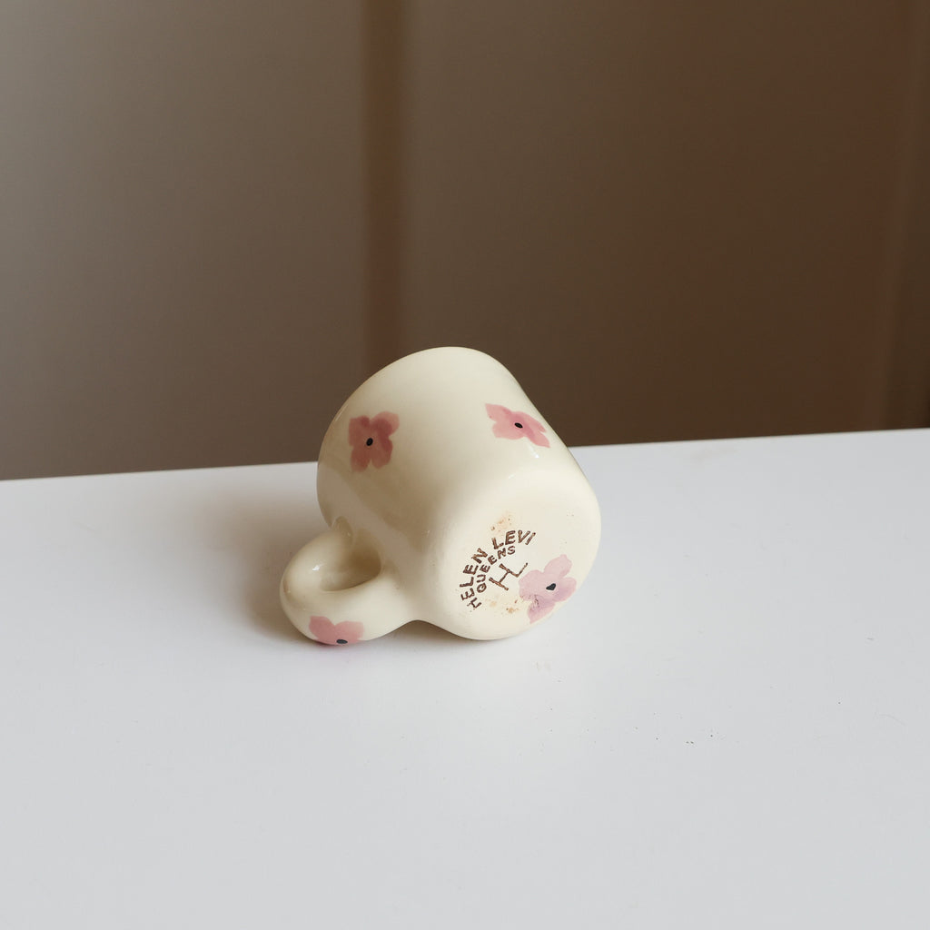 Lil stoneware mug with stamped pattern, coated in clear glaze. Holds 2oz and measures 2" x 2".