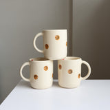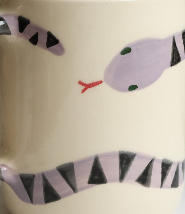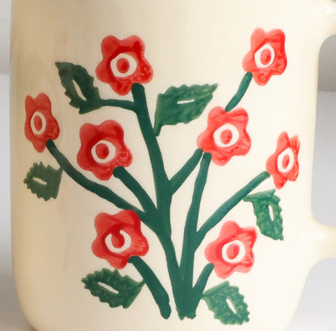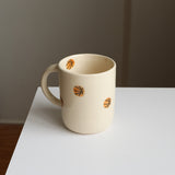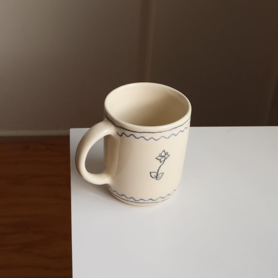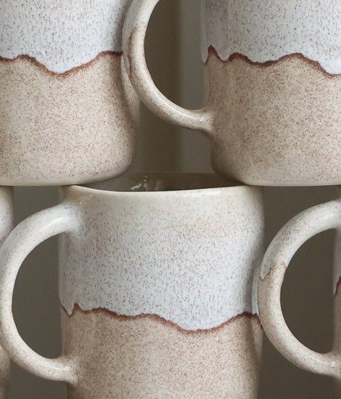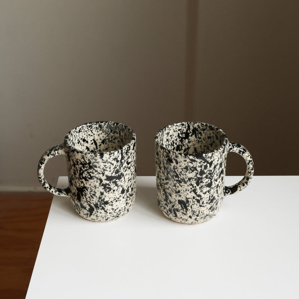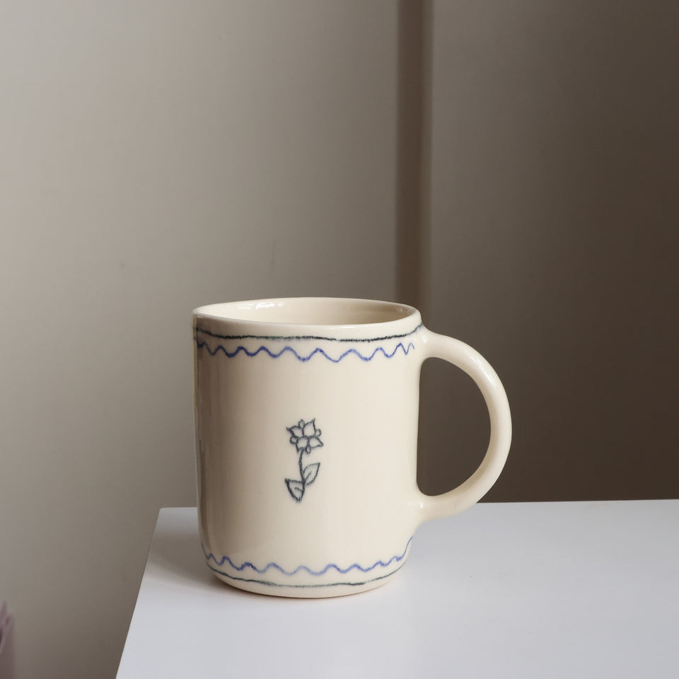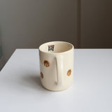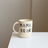 The Giant mug holds a substantial 18oz, and has a spacious handle which accommodates a four-finger hold. Made from durable white stoneware, dishwasher and microwave safe. Measures 4" wide x 4.5" tall.