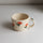 Stoneware mug with allover stamped marigold design, coated in shiny clear glaze. In collaboration with Diaspora Co, each mug order will receive a free tin of Golden Milk